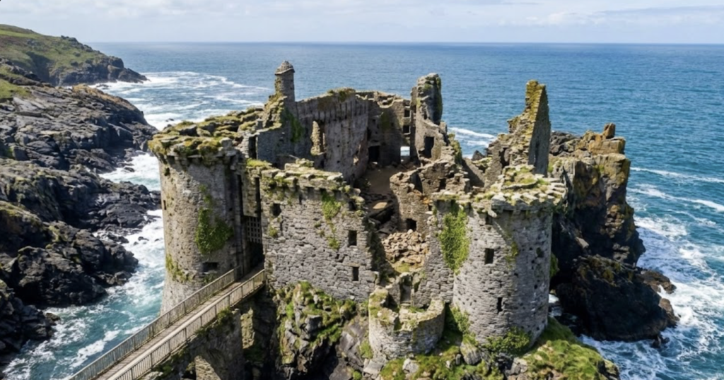 - Le Vieux-Château (Incontournable) : C’est l’image emblématique de l’île. Une forteresse médiévale posée sur un rocher, digne de Game of Thrones. C’est ici qu’Hergé a puisé l’inspiration pour « L’Île Noire » de Tintin.